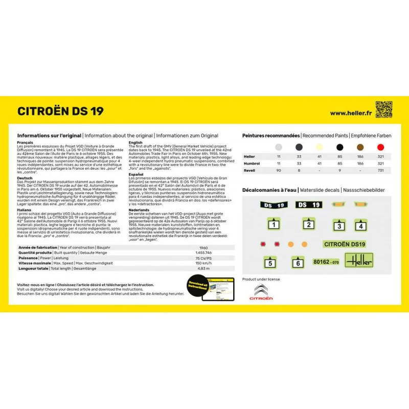 De eerste schetsen van het VGD-project (Voiture à Grande Diffusion) dateren van 1945. De DS 19 CITROËN werd voorgesteld op de 42e Autosalon van Parijs op 6 oktober 1955.