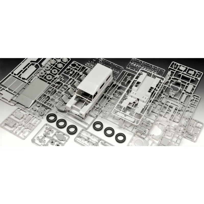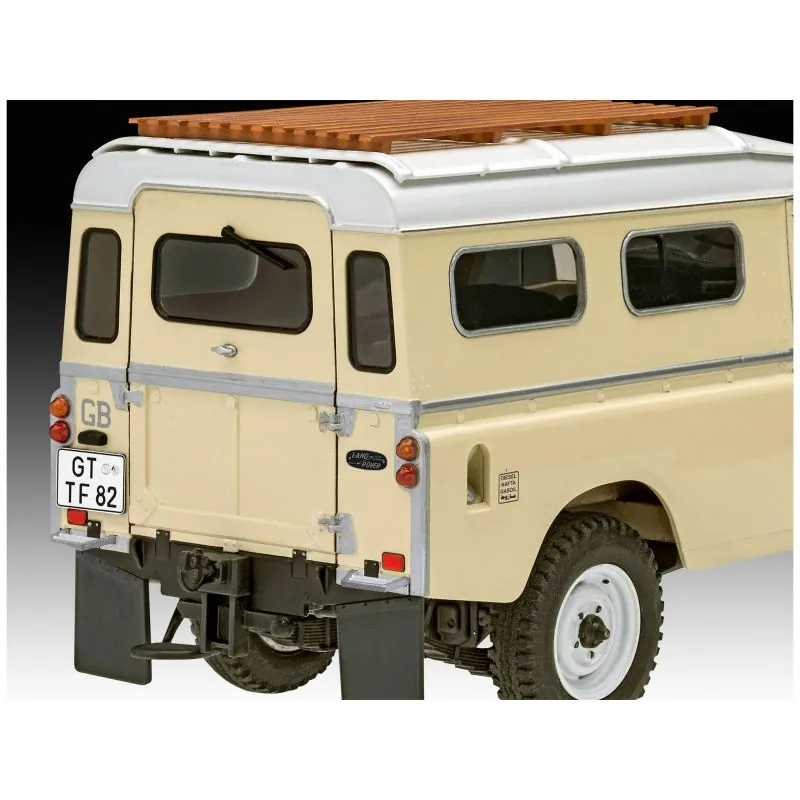 Eenvoudig te bouwen schaalmodel van de iconische Land Rover Series III LWB terreinwagen als “Commercial Vehicle”. Schaal 1/24. 174 stuks. 19,5 cm lang – 8,6 cm breed. Geschikt vanaf 10 jaar. Land Rover Commercial-modelbouwpakket. De bedrijfswagen was geschikt voor het vervoer van onhandelbare goederen en dankzij de tegen corrosie beschermde laadvloer ook corrosieve stoffen. – Meerdelige viercilindermotor – Rechts- of linksgestuurde versie – Stickers met verschillende markeringen (D, A, NL, B, F, GB, I, CH, IRL)