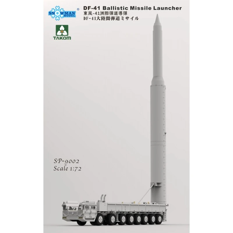 DF-41 Ballistic Missile LauncherDongFeng (oostenwind) Chinese wegmobiele intercontinentale ballistische raket (ICBM) op HTF5980A Transporter Erector Launcher (TEL). Gedetailleerde dubbele cabines en motor, alternatieve wielnaafopties, foto-etsonderdelen. Inclusief raket. Optionele transportmodus of lanceermodus. L: 292 mm (ongeveer), raketdiameter: 31 mm (ongeveer).